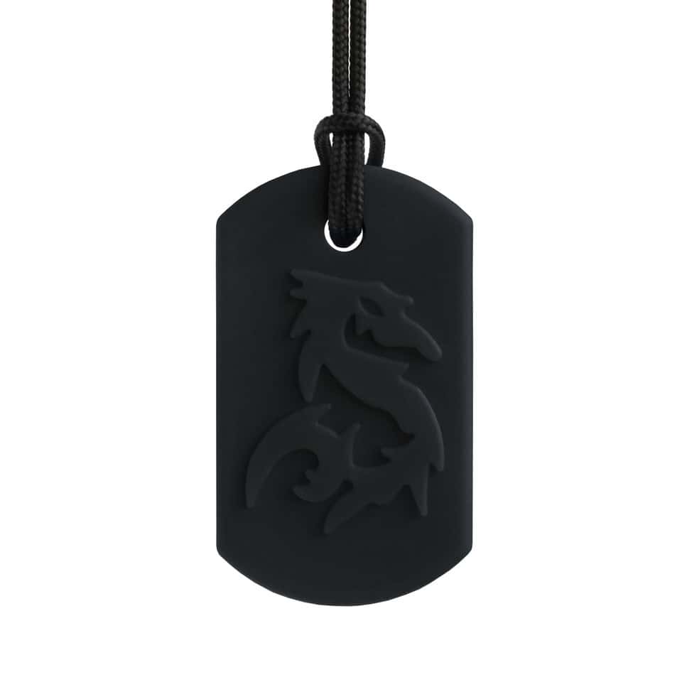 Hello dragon fans – this chew necklace is for you! ARK’s Dragon Bite® pendant features a dragon shape on the front side (raised for texture) with a smooth back side. Because this is a more robust shape, it’s also a good option for tougher chewers. Use it as a safe alternative to chewing on pencils, shirts, fingers, etc. and to help calm, focus, and self-regulate.