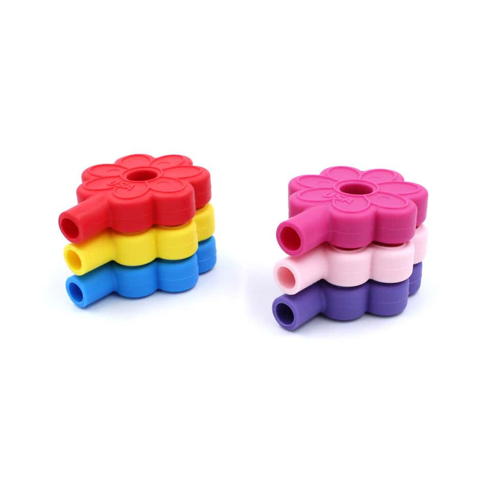 Does chewing on pencils sound familiar? Made in the USA, ARK’s Flower Chewable Pencil Topper is the perfect solution. It has a flower design with a tactile rib around the petals, with a hollow sleeve to fit over the end of a pencil. Like all other ARK chews, it’s available in 3 color-coded toughness levels: