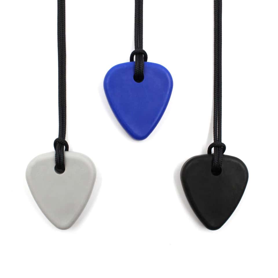 At 1.5″ tall, 1.3″ wide, and .3″ thick, ARK’s Guitar Pick is one of our smallest and thinnest chewelry options. The Guitar Pick was designed specifically for teens and adults with a simple, discreet look and neutral colors. Â