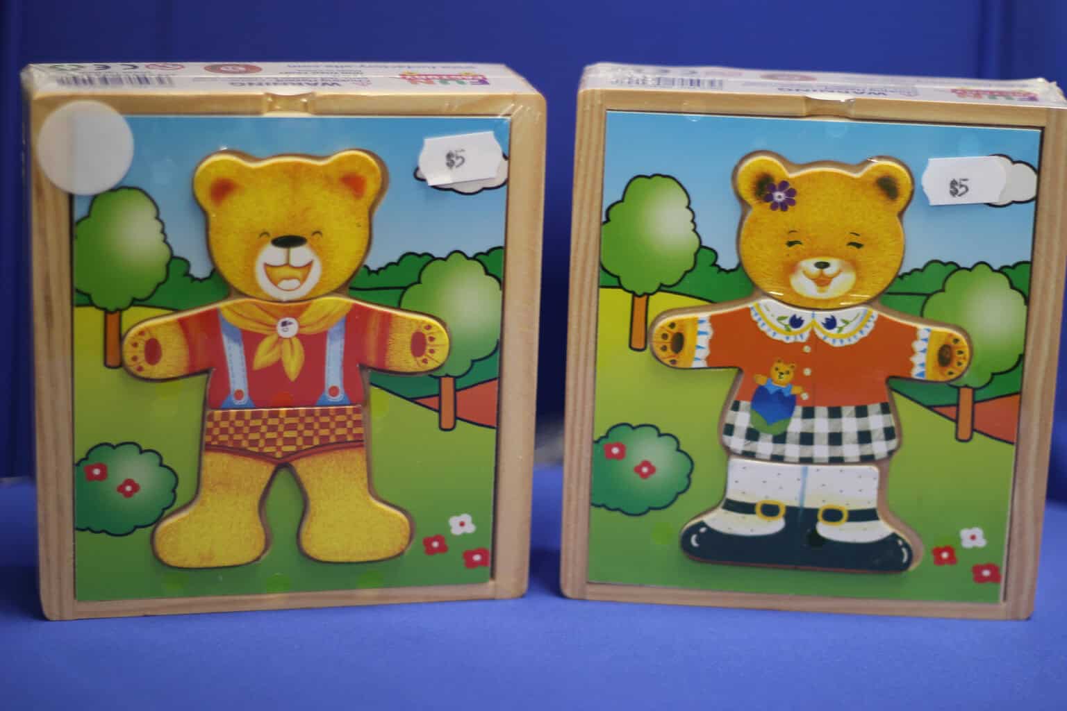 Set of 6 dress up bears set in its own wooden box