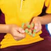 The Fidget Chain has 24 links which pivot and locks into 5 positions so you can build and shape the chain in lots of different ways. When you snap the links together, they make a satisfying click sound.