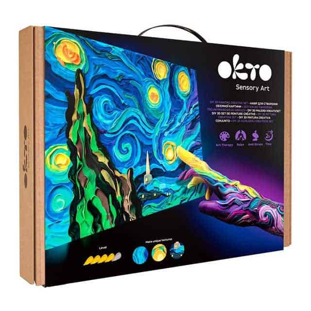 Indulge in tranquility with our Sensory Art Creative Set Starry Night. Designed for those seeking solace, it’s a retreat into self-discovery and expression. Our unique formula ensures a mess-free experience, with a smooth and soft texture that effortlessly glides onto the canvas, allowing colours to blend seamlessly.