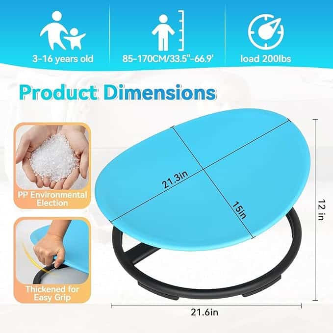 - Dual Grip Design: Dual Grip Design Is Safer, Anti-Roll, Wrap-Around Shape, Heavy-Duty Metal Base, And Can Accommodate Adults Up To 110 Kg/220 Lbs, Ensuring That Your Child Can Rotate Safely And Stably Every Time He/She Plays, So It’S Easy To Sit And Safe To Play