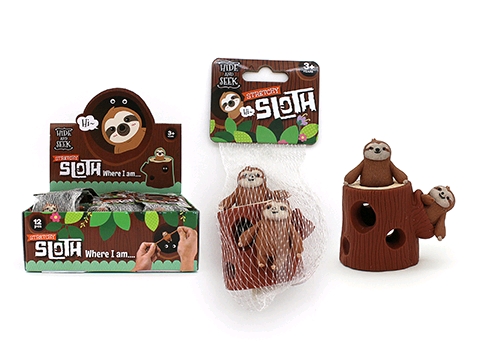 STRETCHY TREE STUMP WITH 2 SLOTHS (IN NET BAG)